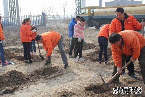????草長鶯飛,春回大地,我們又迎來了一年一度的植樹節。為保護環境,美化家園,公司組織職工開展了綠化植樹活動,主要栽種榆葉梅和紫葉李。廣大職工熱情高漲、積極參與,在植樹現場,大家累并快樂著:挖土、扶樹、回填、澆灌,大家有說有笑,忘記了疲勞,同心協力種下了希望的幼苗。